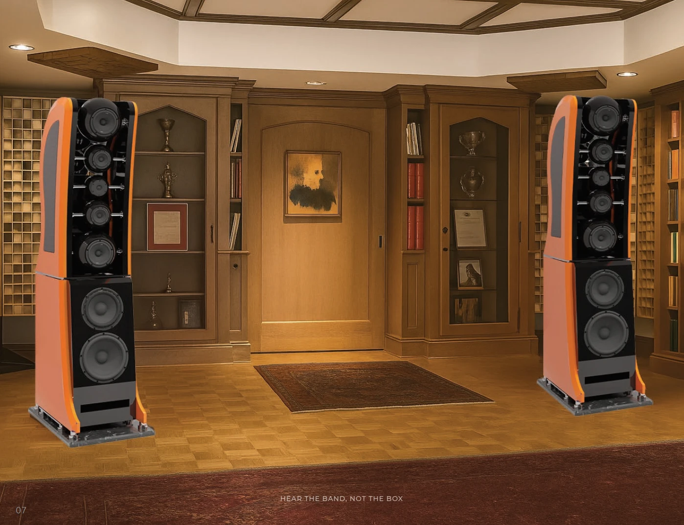 Our IPS completely isolates mid and treble modules from the bass cabinet using dedicated support pillars anchored directly to the floor. This provides the rigid mounting necessary for accurate driver performance while eliminating all vibration transmission.
